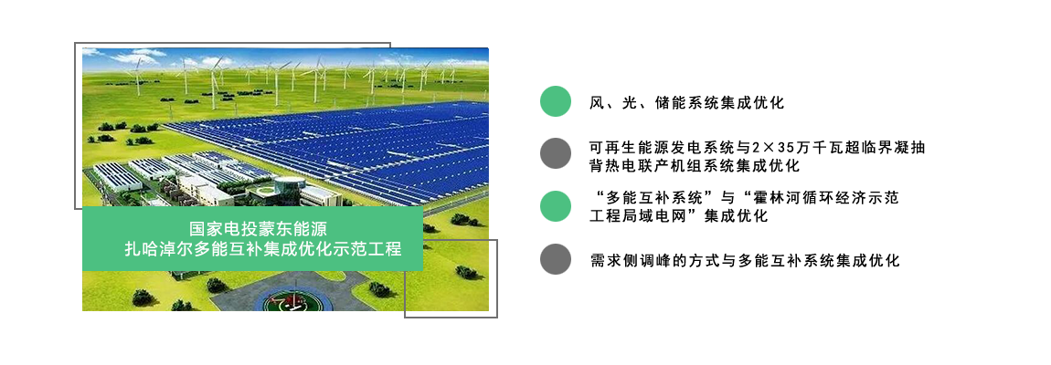 2016年7月,國家發(fā)展改革委、國家能源局下發(fā)了《關(guān)于推進多能互補集成優(yōu)化示范工程建設(shè)的實施意見》,計劃在“十三五”期間,建成國家級終端一體化集成供能示范工程20項以上。受國家電投蒙東能源集團有限責任公司委托,我公司開展了相關(guān)的研究工作,并編制完成了《國家電投蒙東能源霍林河多能互補集成優(yōu)化示范工程說明書》,上報國家能源局。