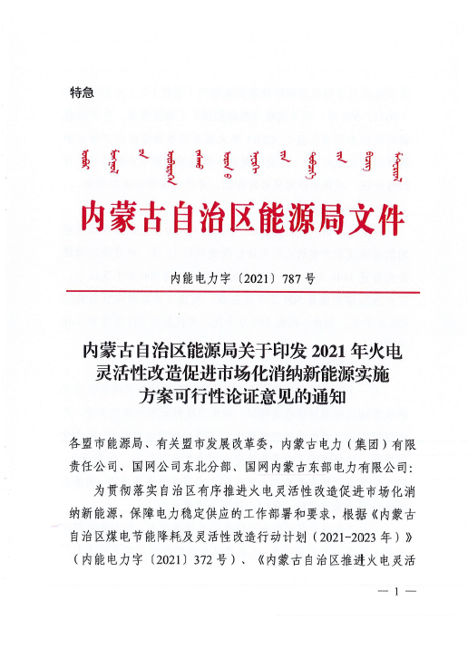 為積極貫徹落實國家“碳達峰”戰略目標,加快推進自治區能源電力低碳清潔綠色轉型,支撐新能源高比例消納和高質量發展,內蒙古自治區能源局于2021年4月陸續下發系列文件,要求各盟市組織本地區相關企業開展火電靈活性改造工作,編制并申報具體實施方案。